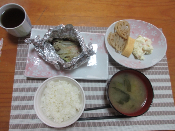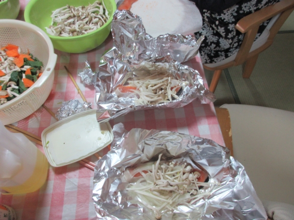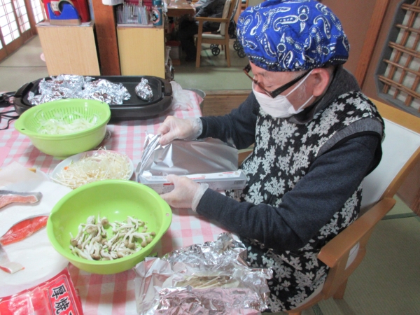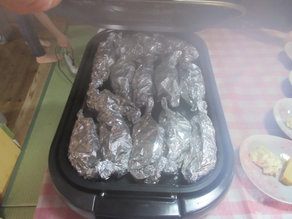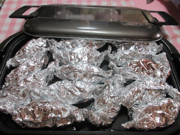 ホイルで包んだ鮭を蒸し焼きをしていきます。