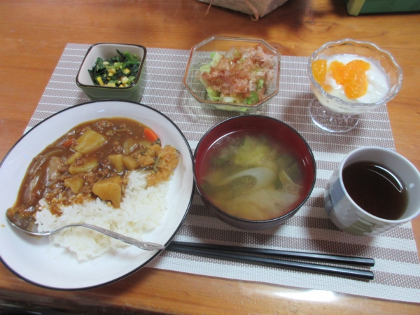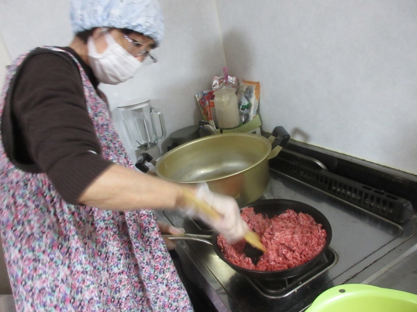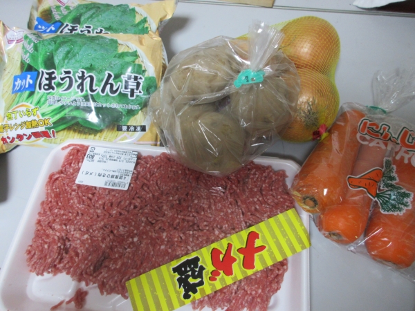本日のカレーは、挽肉を使います。