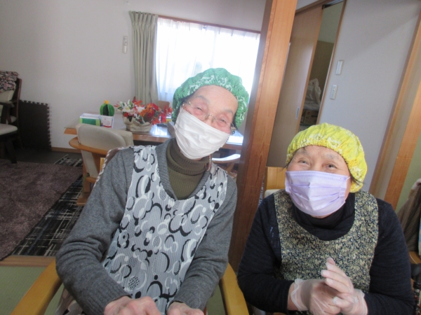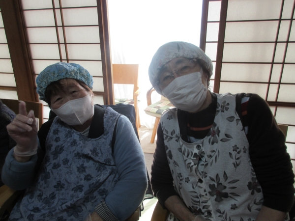 エプロン・バンダナ・手袋・消毒をして準備万端