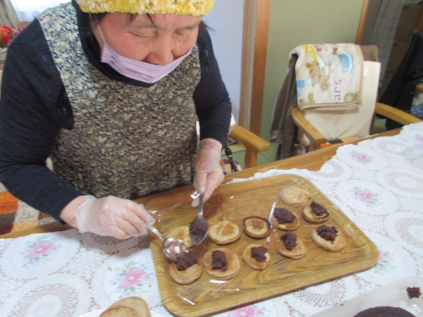 生地に粒あんをのせていきます。