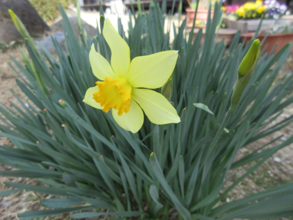 玄関先には、綺麗なパンジーさんや水仙の花たちがお出迎えしてくれます