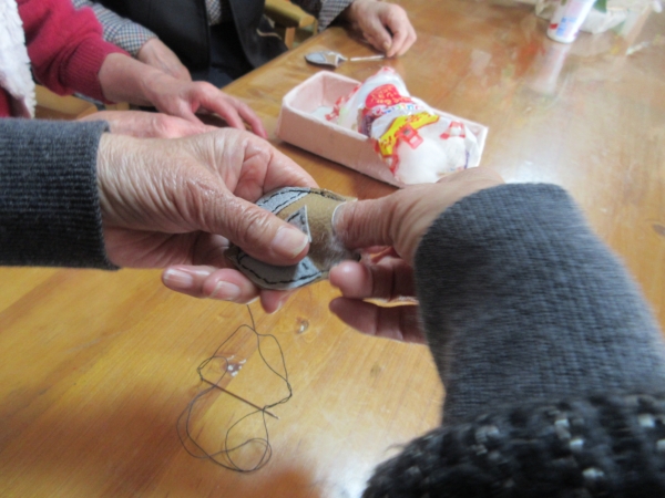 糸のいろを変えて変化をもたせたり、目玉の位置によっても