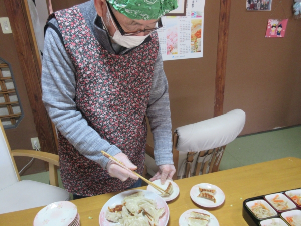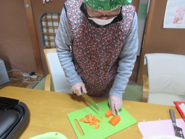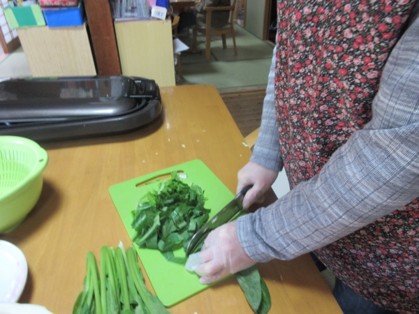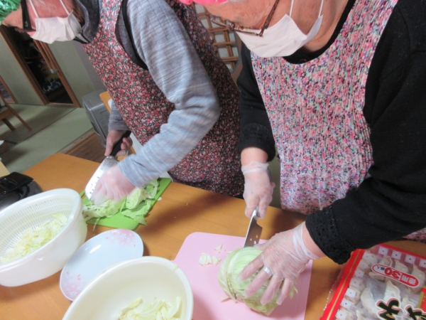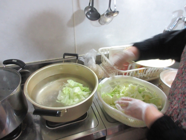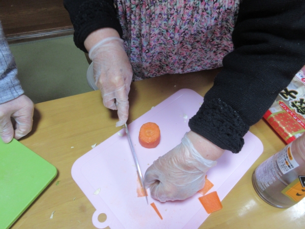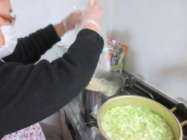 エプロン・手袋を付け手指消毒をしたら調理スタートです。