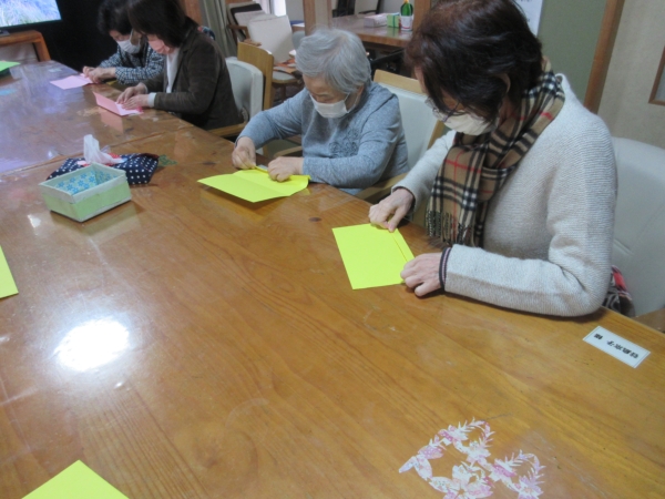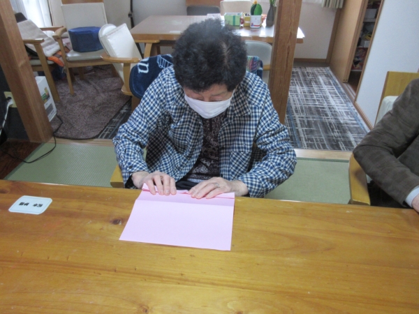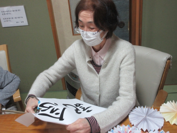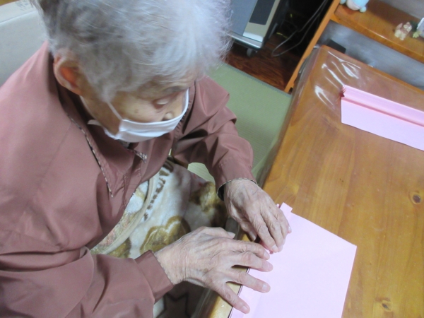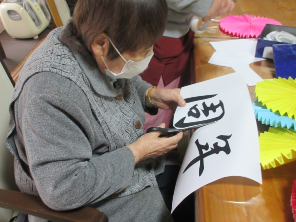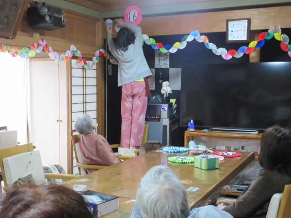 母達に「このへんですか~?」と聞きながら飾りに貼りつけていきます
