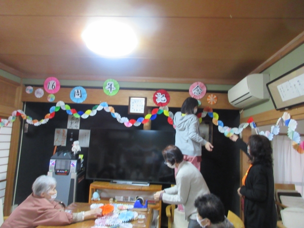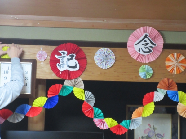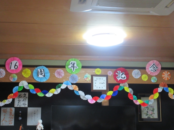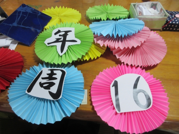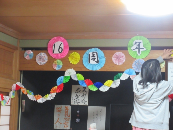 「16周年記念」の文字を丸い飾りに貼りつけていただきます
