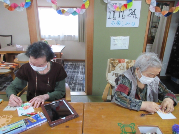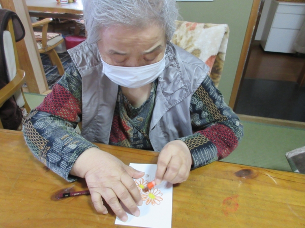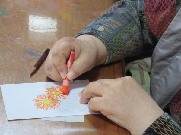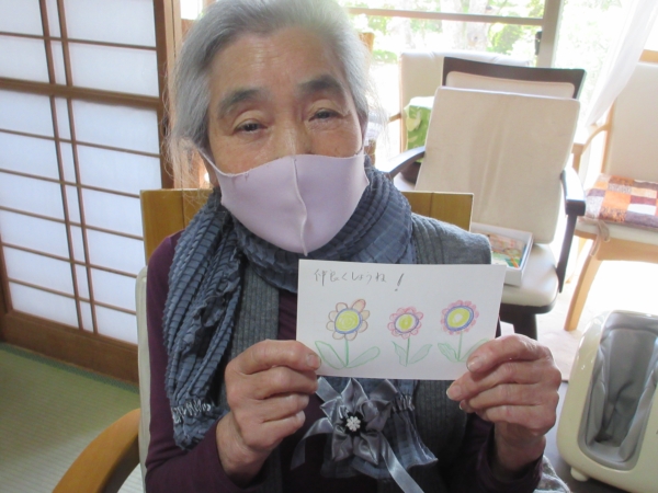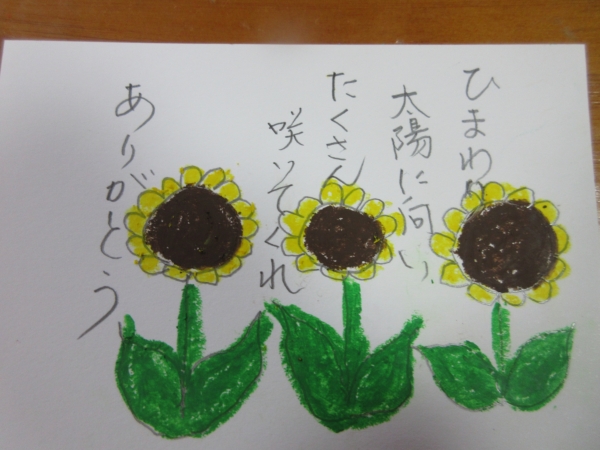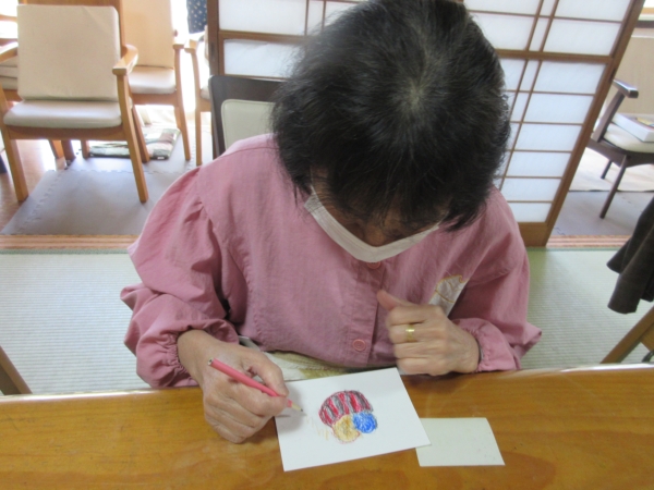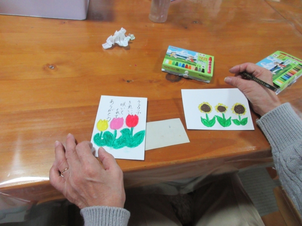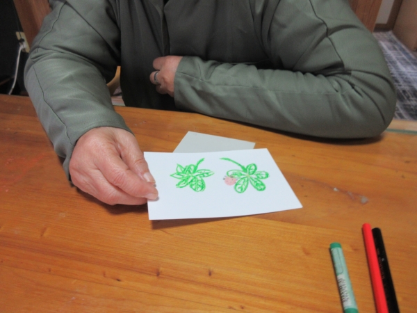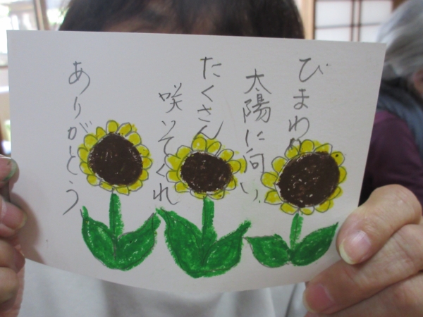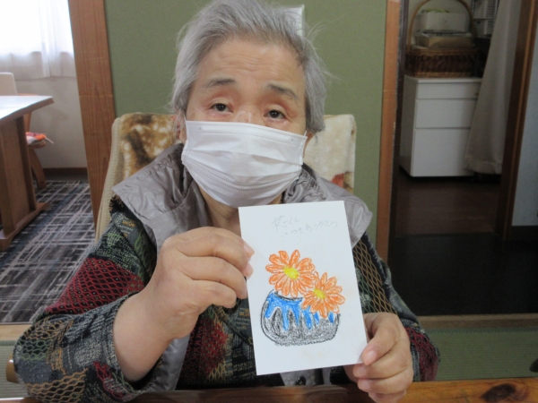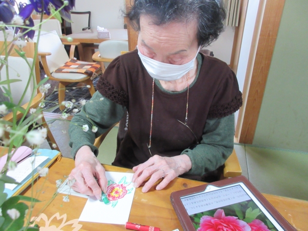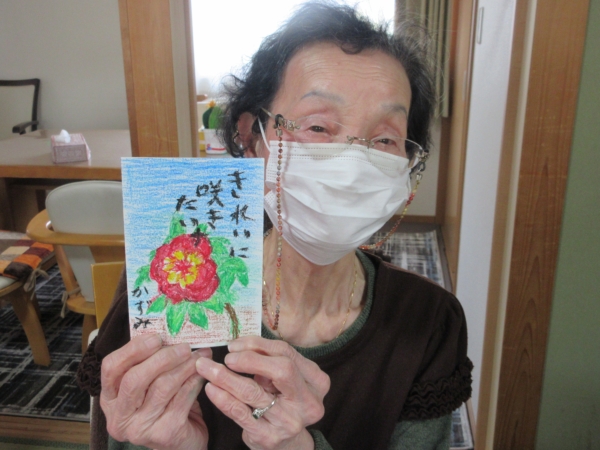 以前に習っていたという幸せの幸庵庵の母の絵手紙をお手本に