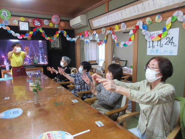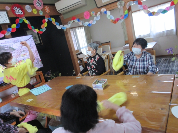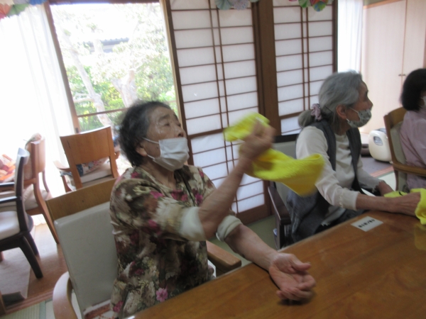 今度は手毬り歌に合わせての脳トレ体操ですよ