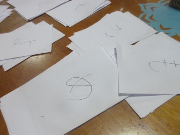 作ったカードの中から「す」と「し」のひらがなを取り出しましょう