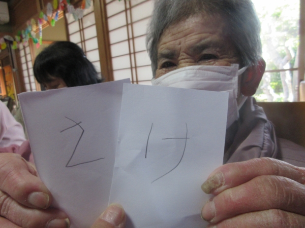 まずは皆さんに、ひらがな(50音)を書いて頂きます
