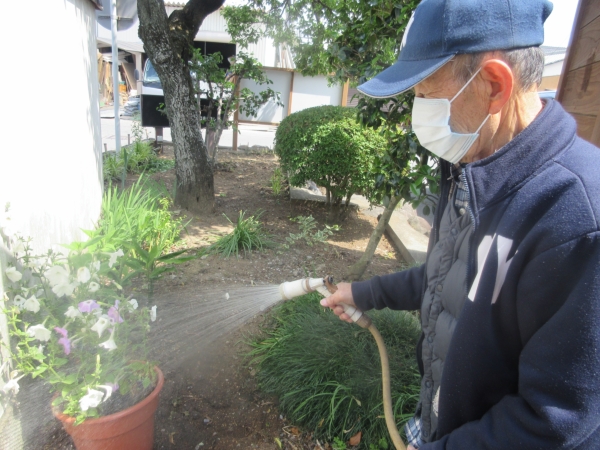そんな様子に心優しく、マメなお父様はお花に水をあげてくれました