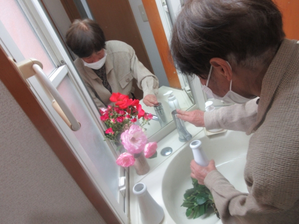 枯れている葉や傷んだ葉を取り除いて、新しいお水を入れ完成です