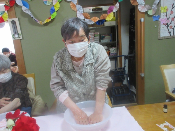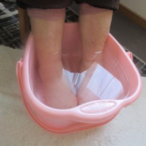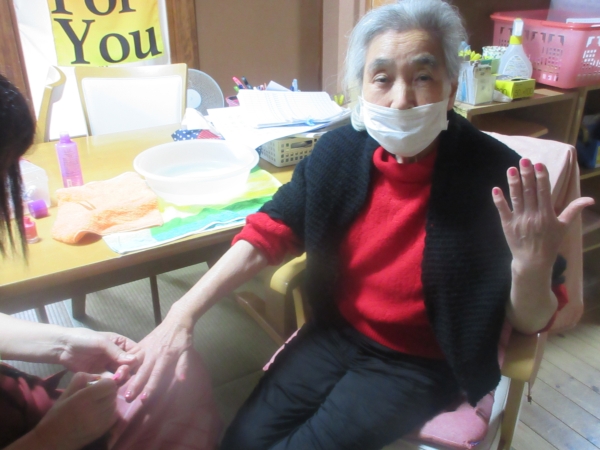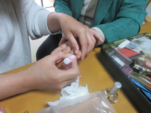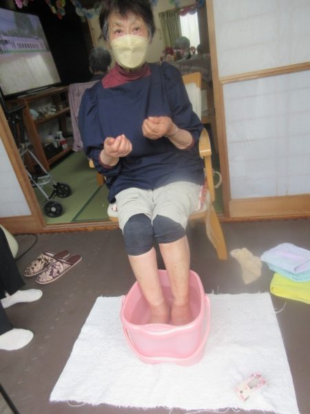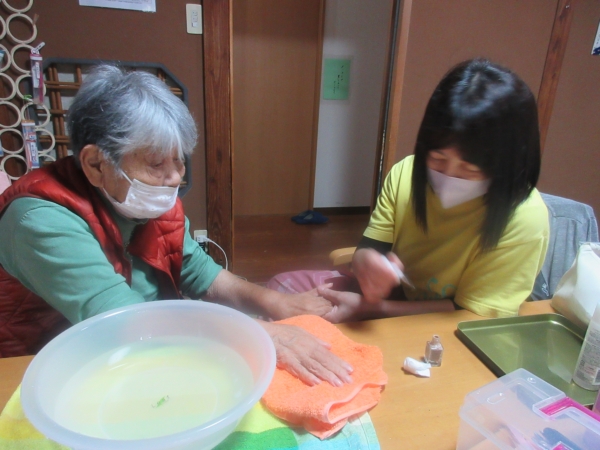 それぞれに、足湯 手浴 爪切り ネイル と順番に行っていきます