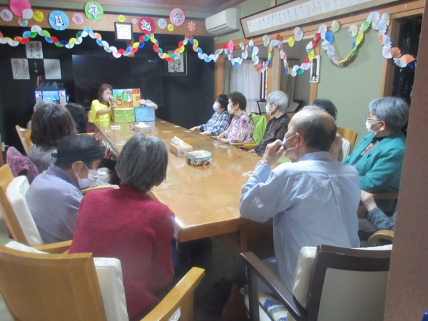 「三角に折るのよぉー。折れた?出来たかしら・・・・?」とても