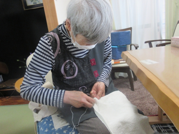 「手が痛いから縫い目は粗くなっちゃうけど、縫い物は好きなの」と