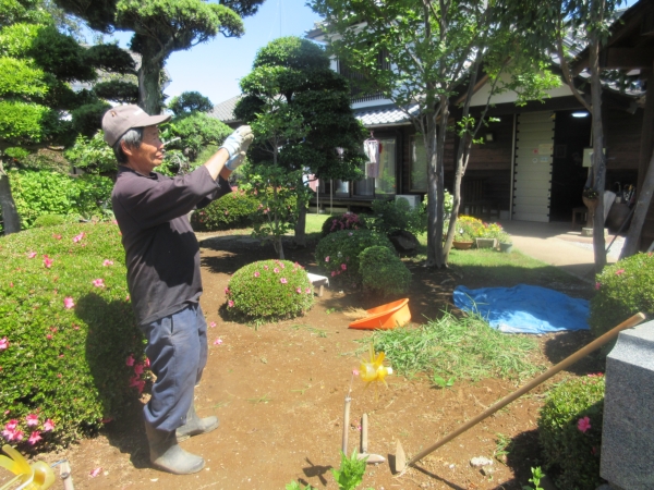 草が無く庭の植物や花が元気なのはこのお方・・・