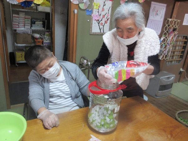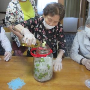 煮沸した瓶に氷砂糖と南高梅を交互に入れていき