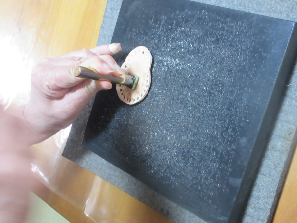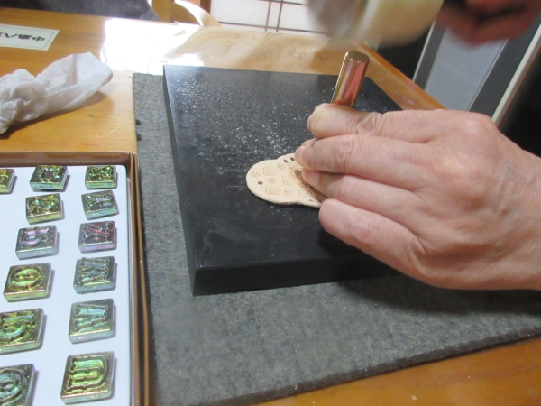 これは、裏側に自分の印(イニシャル)を打ち込んでいるところです