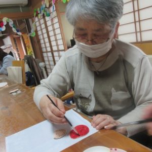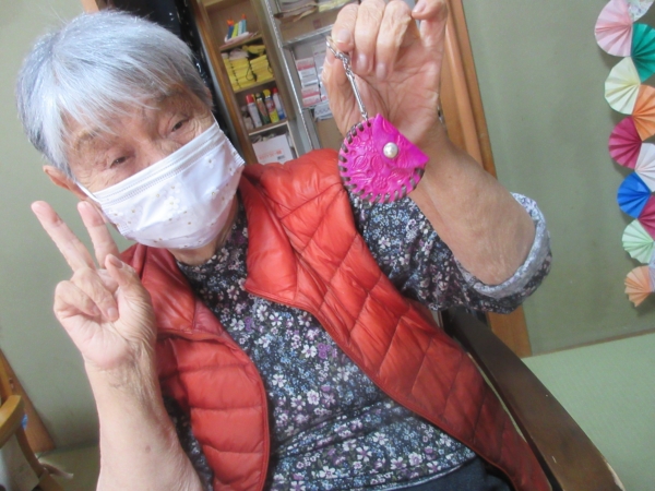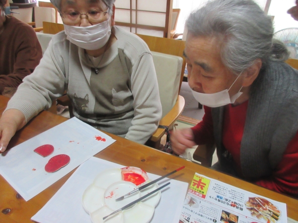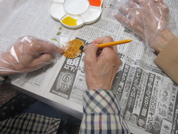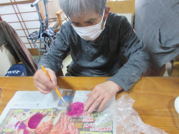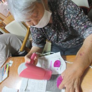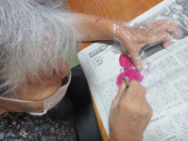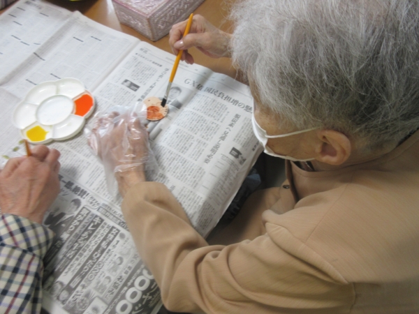 早速、色塗りが終わった最高齢の母。