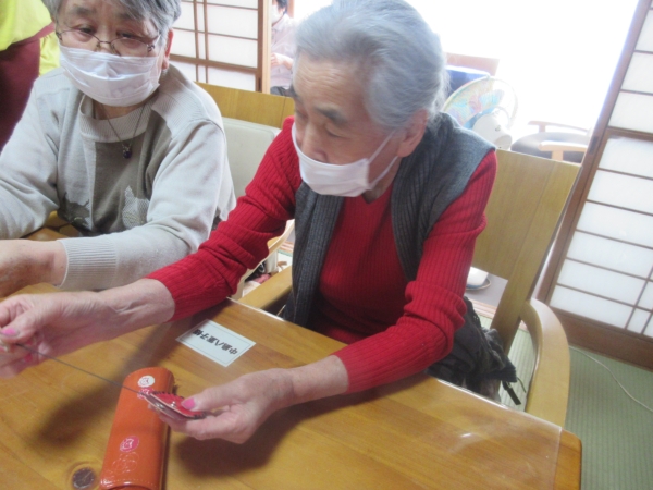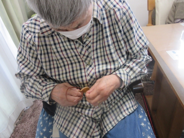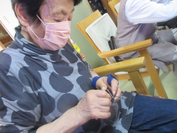 真剣に糸を通していきます。