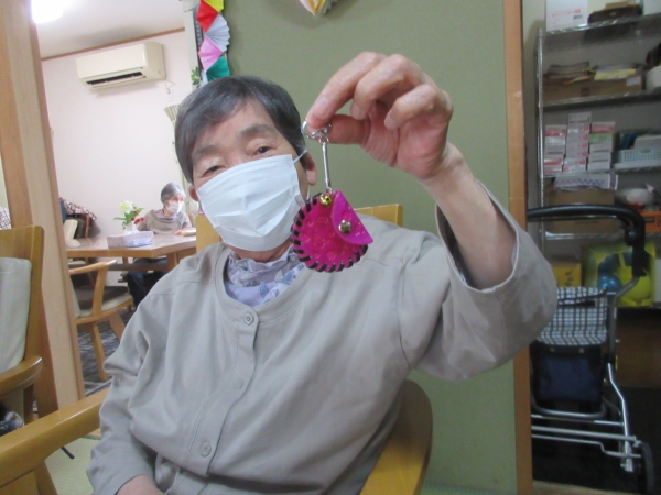 最後はお気に入りの色の鈴とキーホルダーを付けて終わりです。