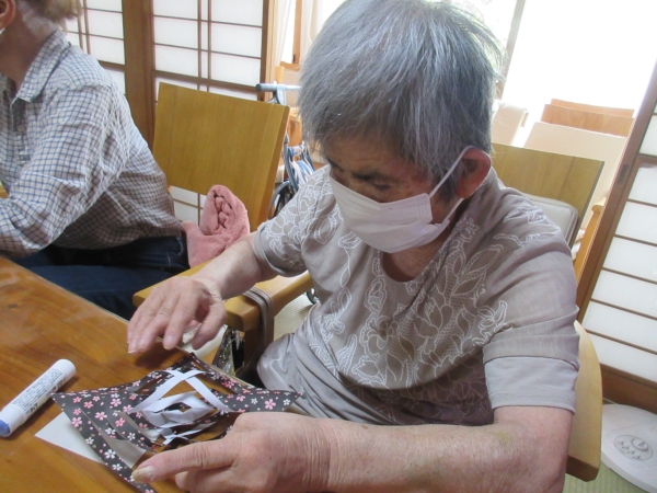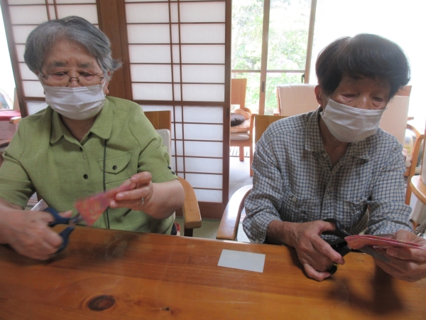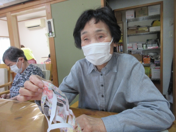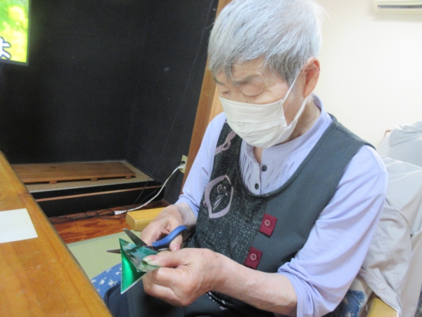 今日の手工芸は七夕に向けて七夕飾り制作です