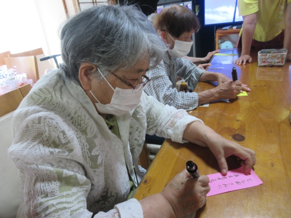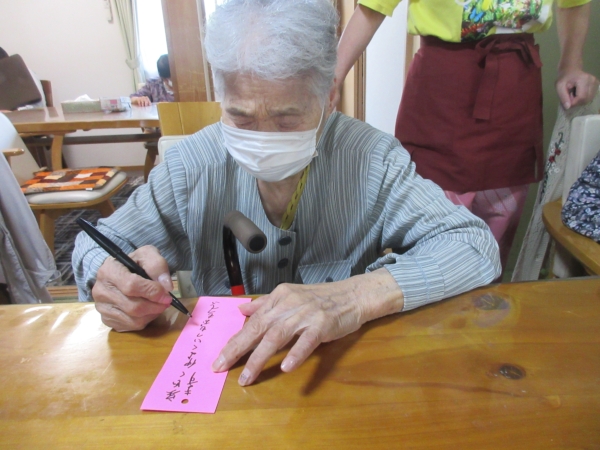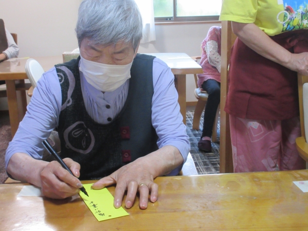 願いを込めて真剣に書いているお母さんたちです