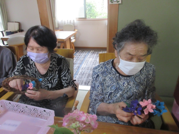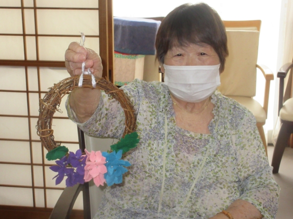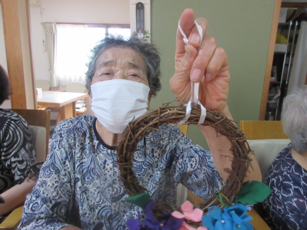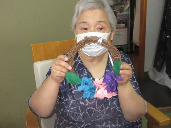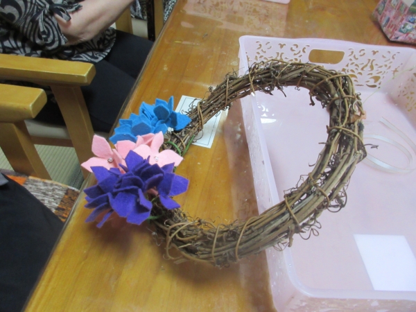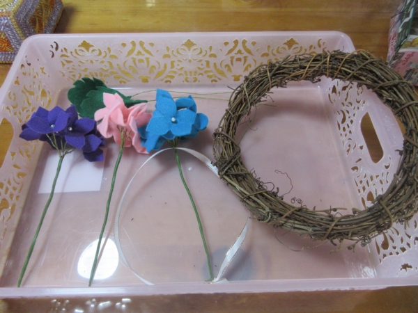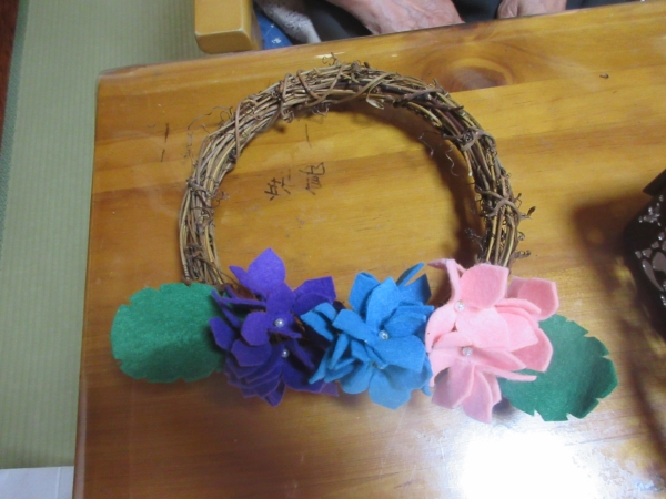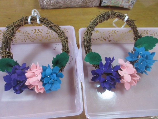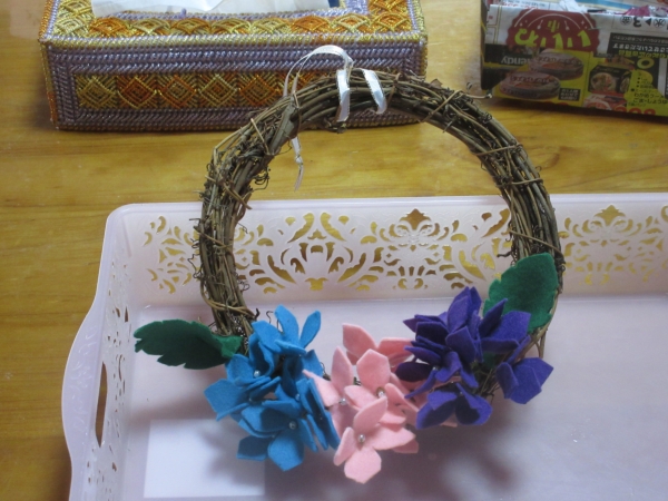 可愛い紫陽花のリースの完成で~す手 (チョキ)手 (チョキ)手 (チョキ)