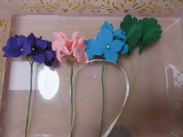 今日は、ピンク・紫・青の3色のフェルトでアジサイの花びらを作っていきます。