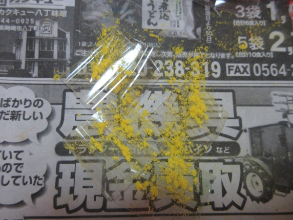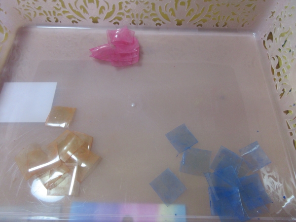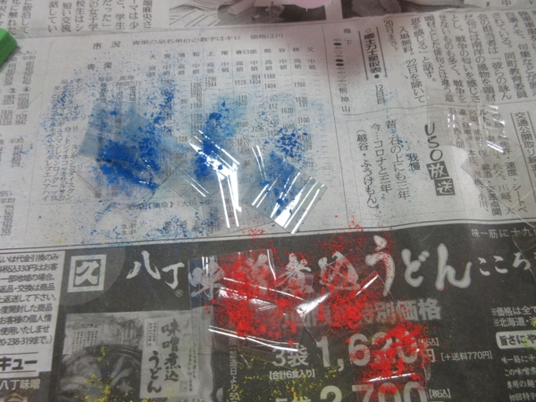 削ったクレパスをまんべんなくティッシュで擦って色をつけます