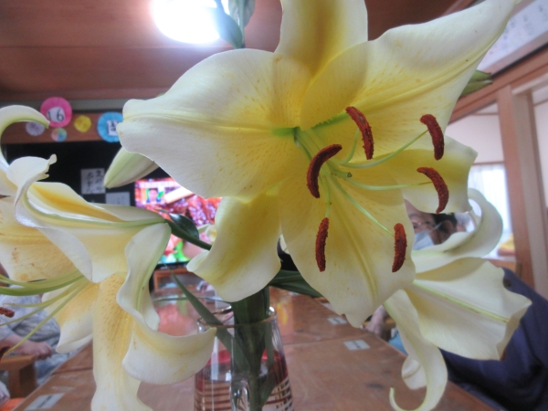 幸せの幸望庵に縁ある方から黄色のカサブランカをいただきました