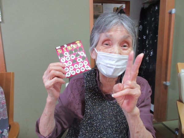 1番にビンゴになった・・・可愛らしい母の笑顔