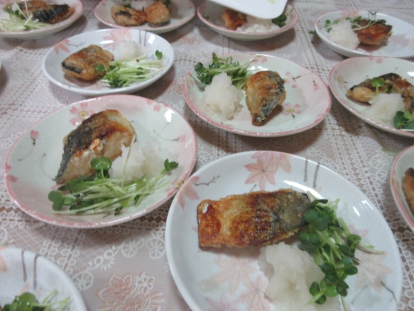 鯖に、父と母が頑張っておろしてくれた、大根おろしを添えて