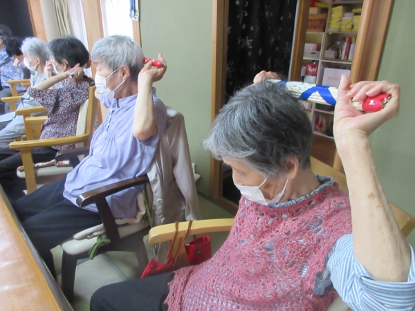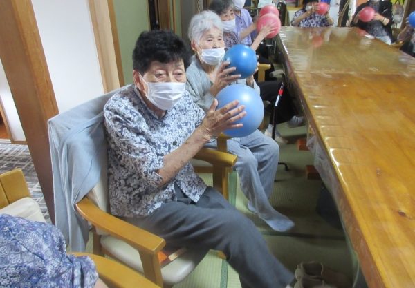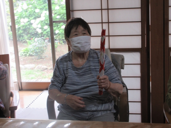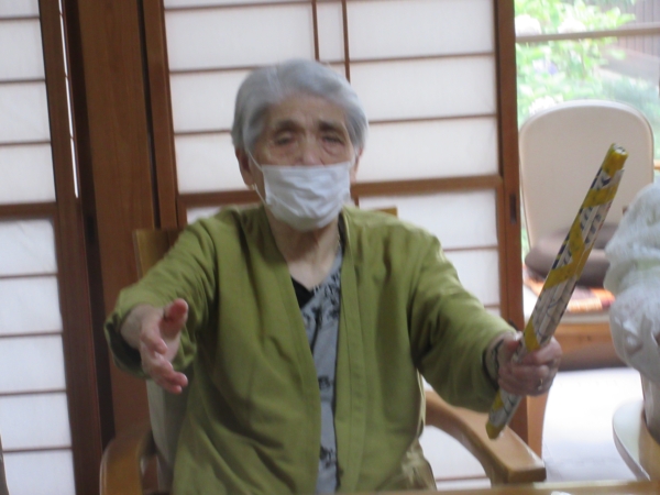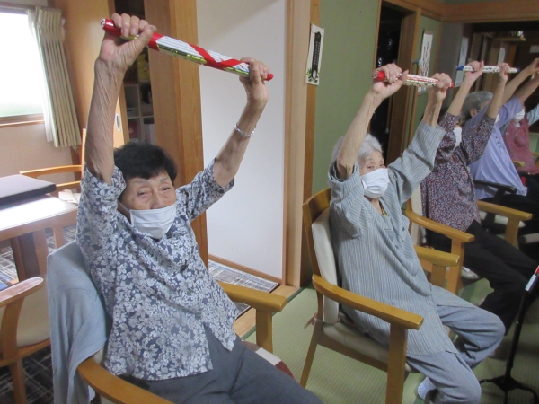 棒を持ってキャッチしたりと楽しく体操出来ました
