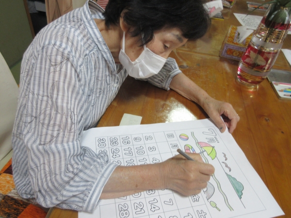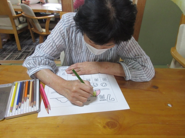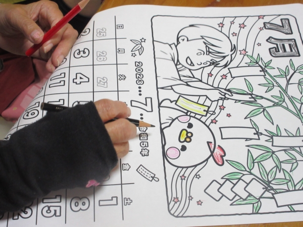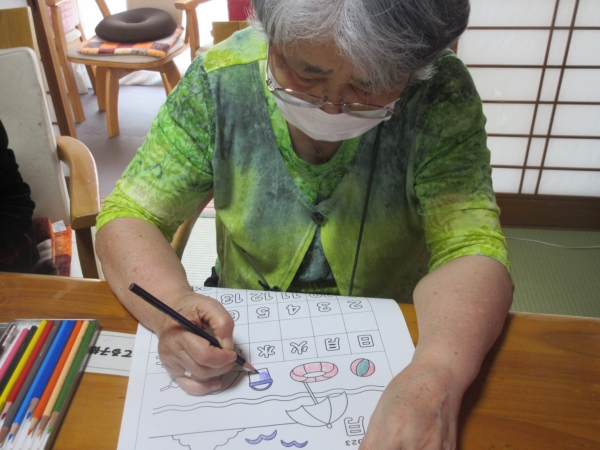 丁寧に慎重に色を塗っています