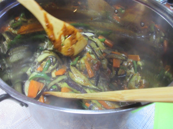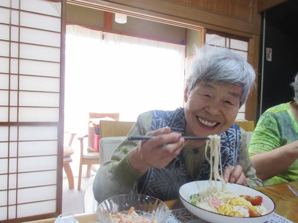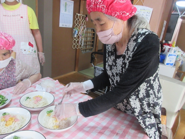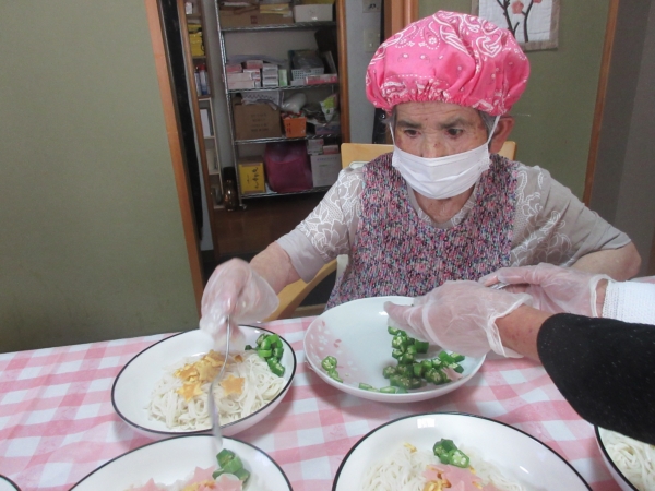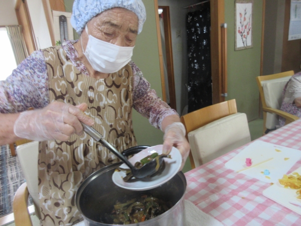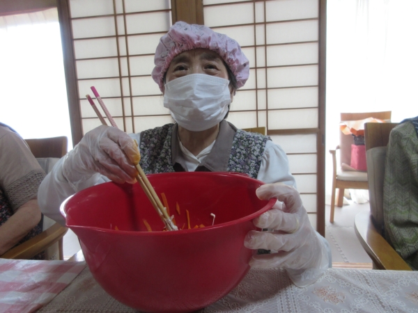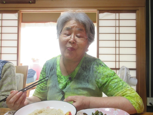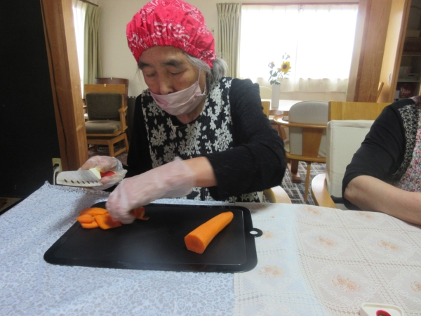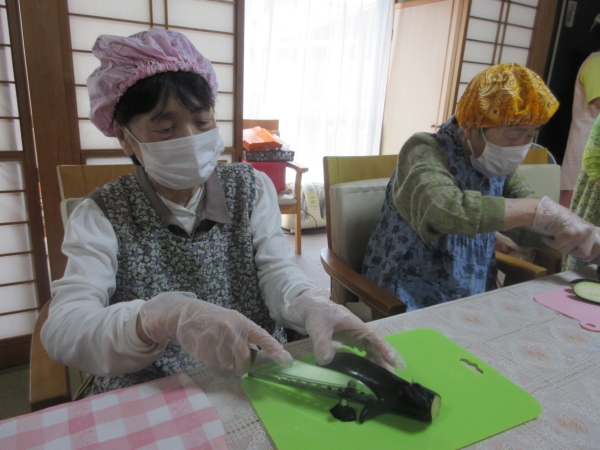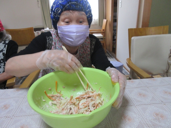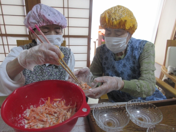 素晴らしい包丁さばきで千切りに切って下さる母たち