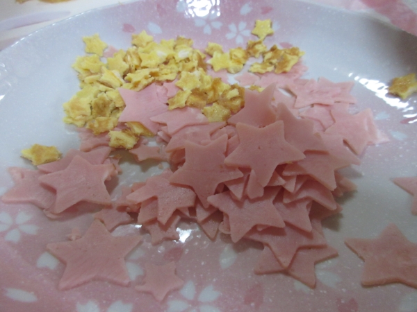 こちらはハムや薄焼きたまごを星型にくり抜き★です