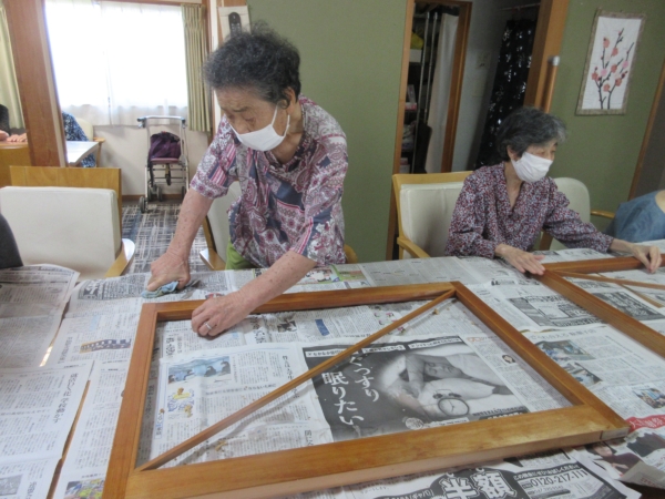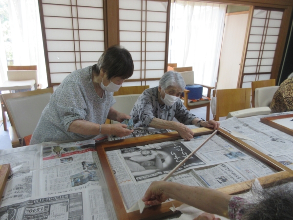 ご覧のように利用施設内の障子の張り替えに