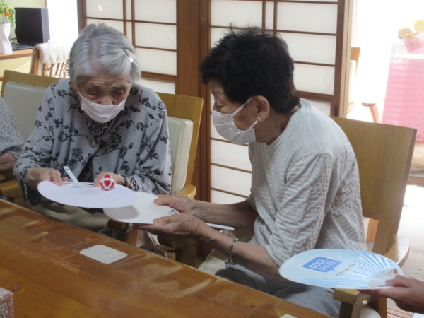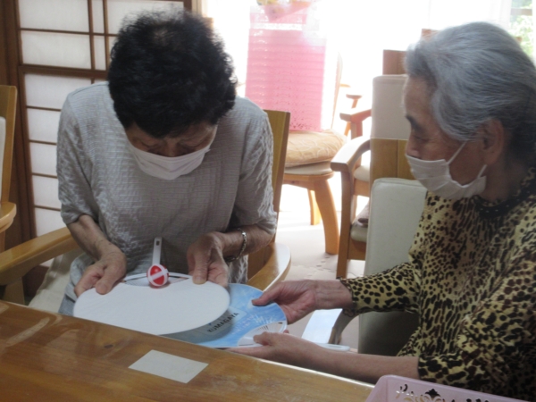 うちわの柄の部分をしっかり持って、次の方へとバトンしましょう