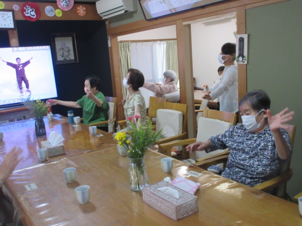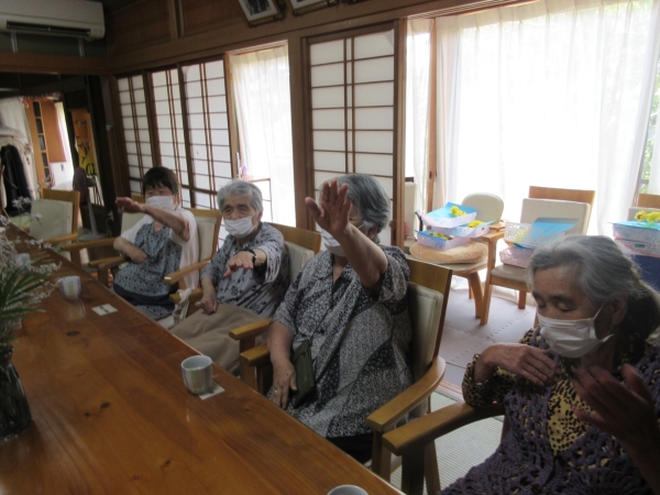 今日のレクは、体操と脳トレです