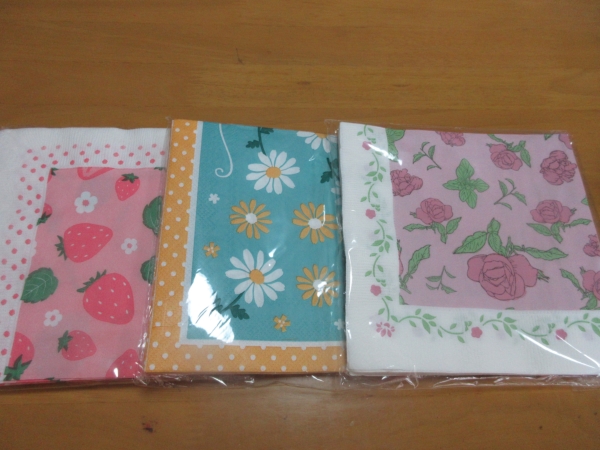 3種類の紙ナフキンの中から、好みの柄を選んで下さ~い。