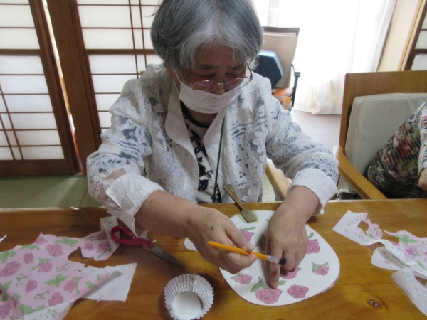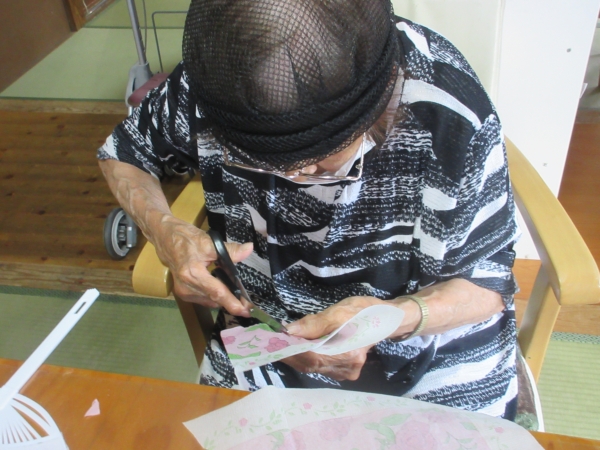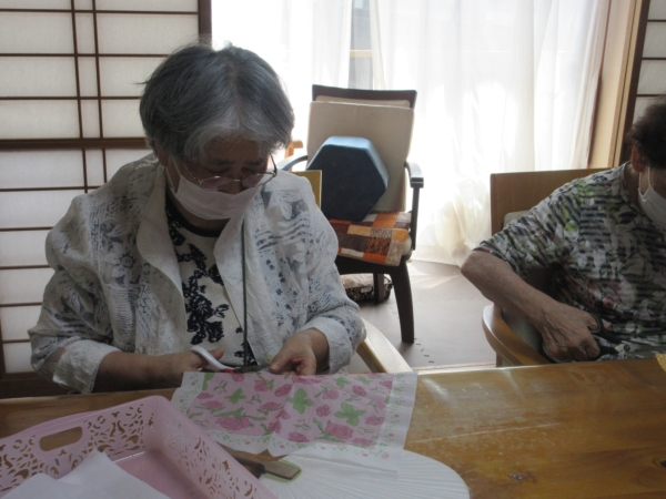 今日の手工芸は、少しでも涼しさを感じて頂くように、