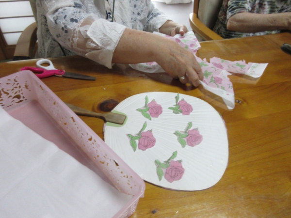 真っ白なうちわに紙ナフキンでデコパージュしていきます