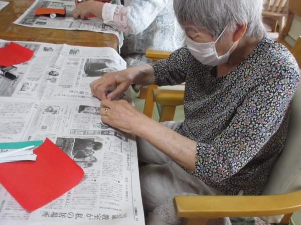 折り紙を使って夏祭りの飾りを作っていきたいと思います。