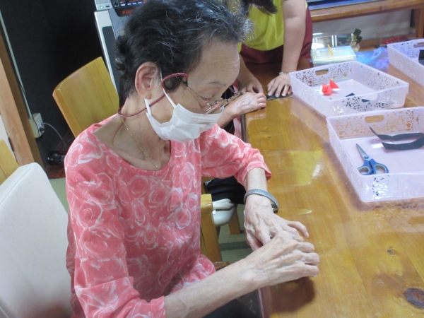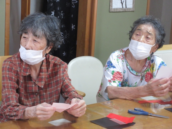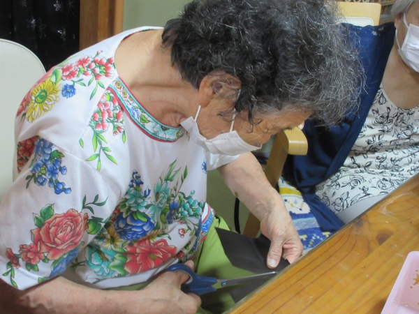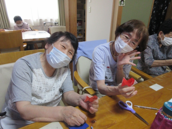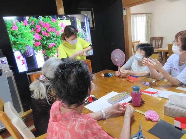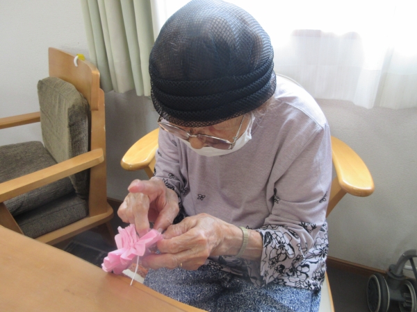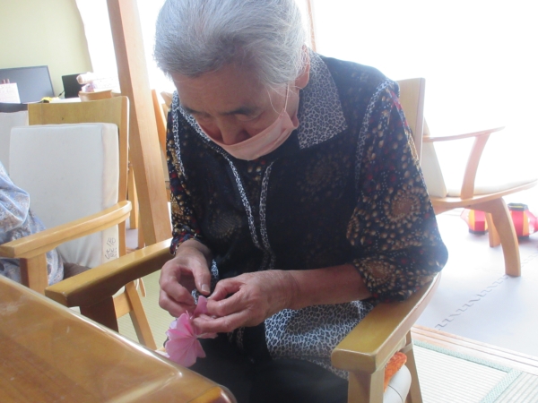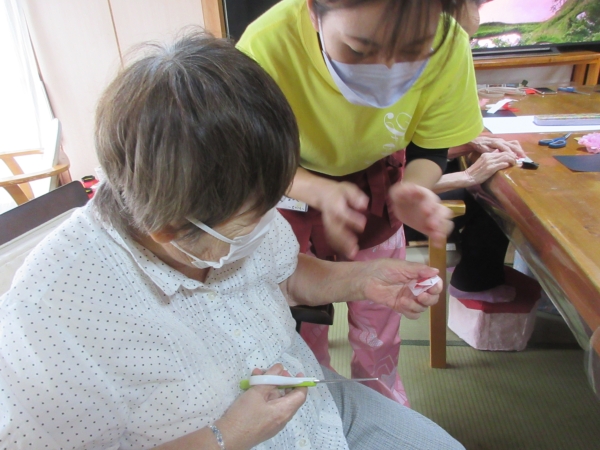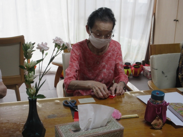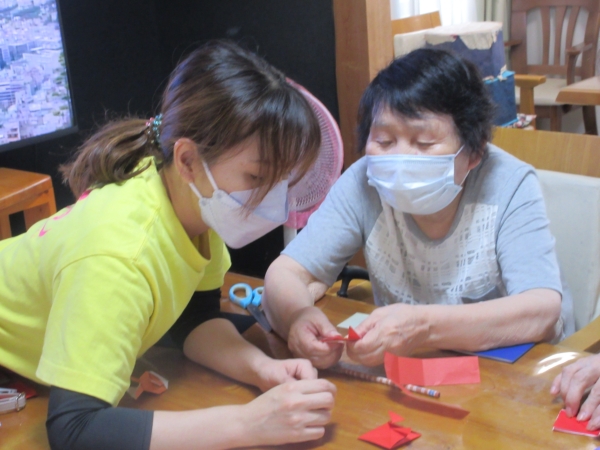 飾りを作りながらお祭りのお話しになったりと皆で楽しみにしている