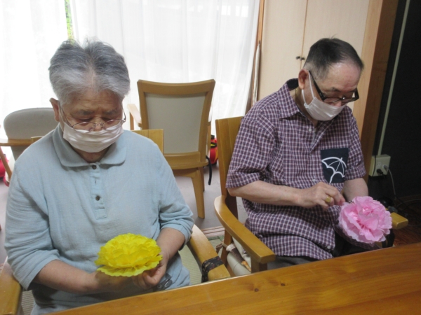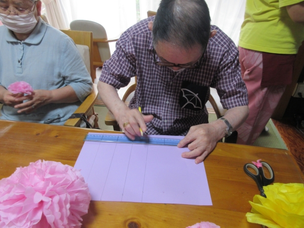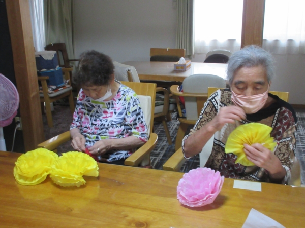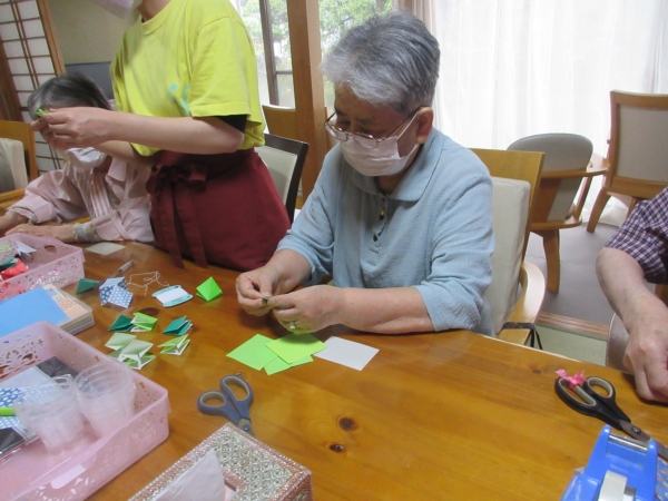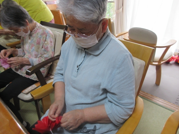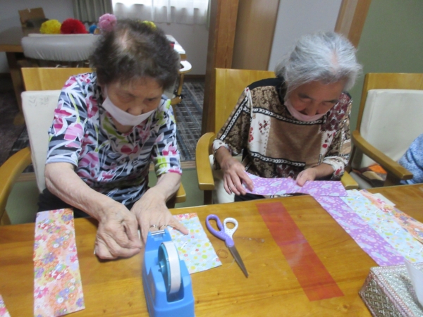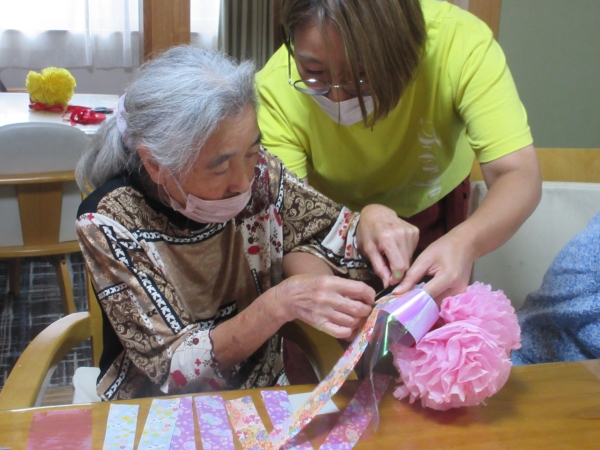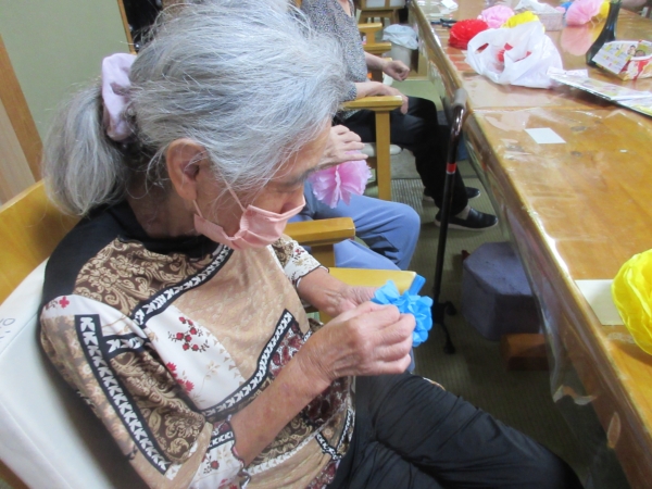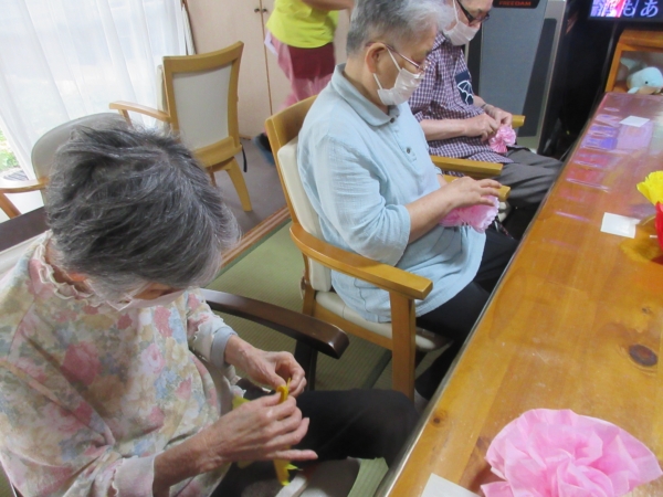 今日も、11日の夏祭りに向けてせっせ、せっせと飾り作りに励んでくれました。