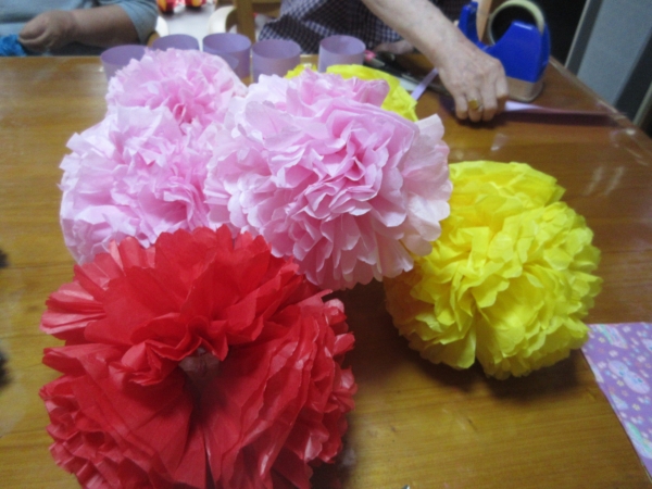 皆さんのご協力で可愛いお花が沢山出来上がりました