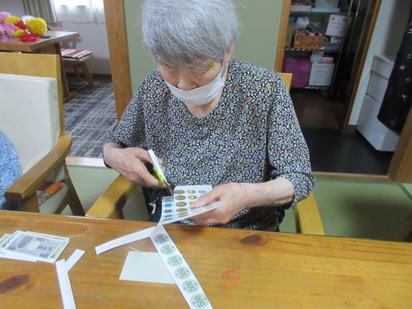 午後は、吹き流し作りチーム、金魚作りチーム、お金作りチームの