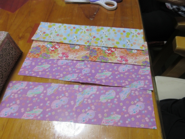 5センチ幅に切った千代紙で飾り付けをしていきます✂