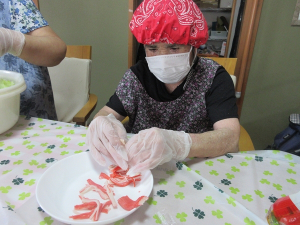 カニカマを細くさいて