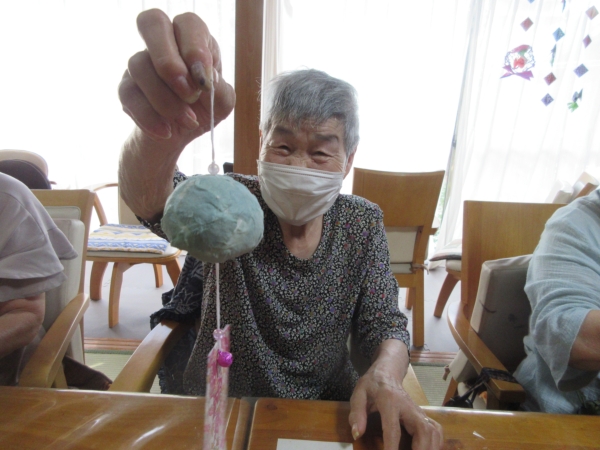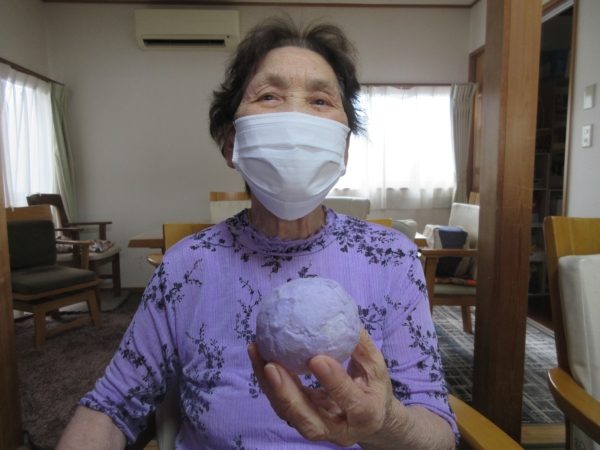 前回、水風船に貼った和紙が乾きましたので